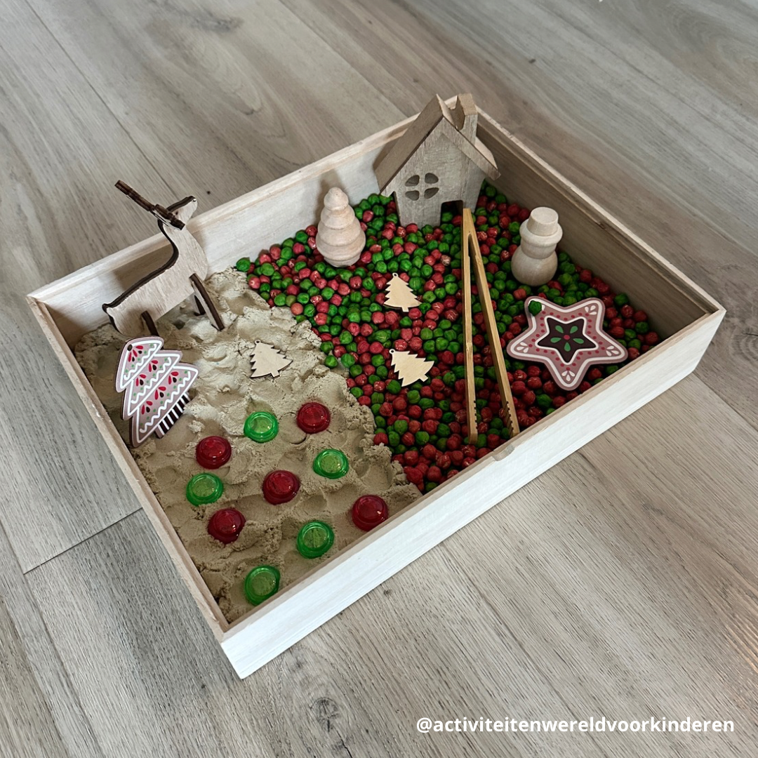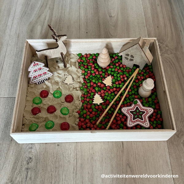 - Houten sensorische bak met deksel (L32xB23,5xH6cm)