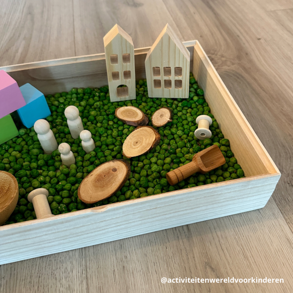 - Houten sensorische bak met deksel (L32xB23,5xH6cm)