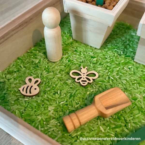 - Houten sensorische bak met deksel (L32xB23,5xH6cm)
