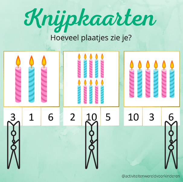- 24 verschillende knijpkaarten met de getallen 1 t/m 24 (kleuters)