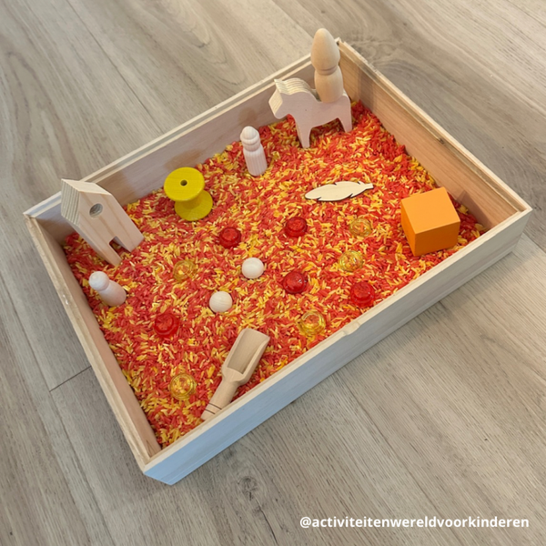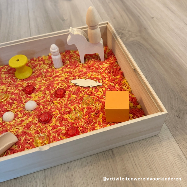 - Houten sensorische bak met deksel (L32xB23,5xH6cm)