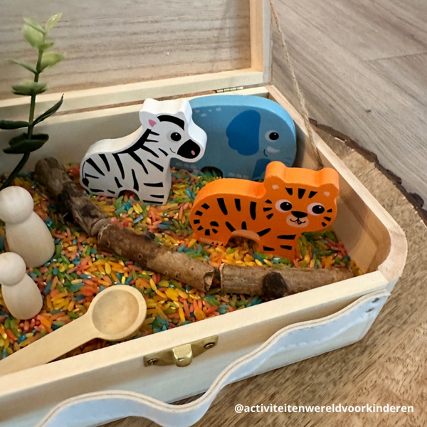 - 3 houten safaridieren (Zebra, Tijger en Olifant)