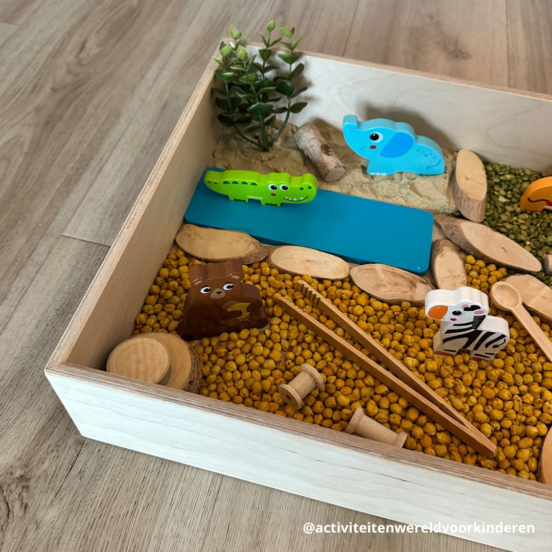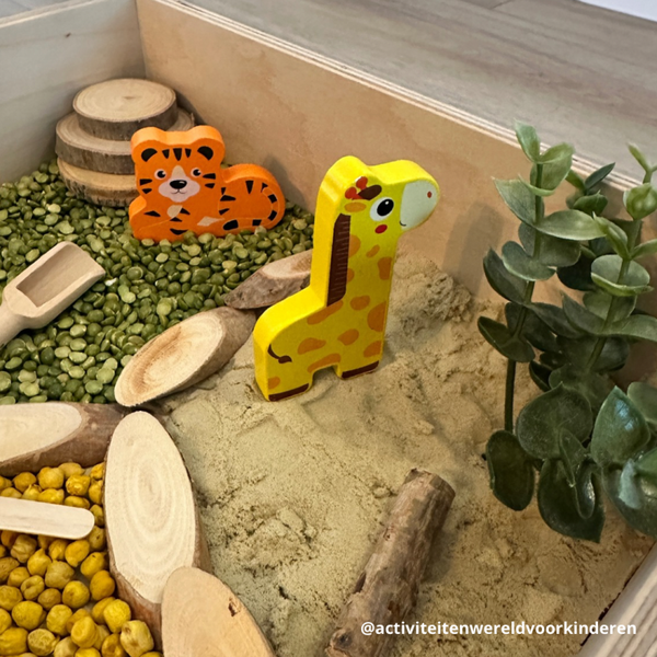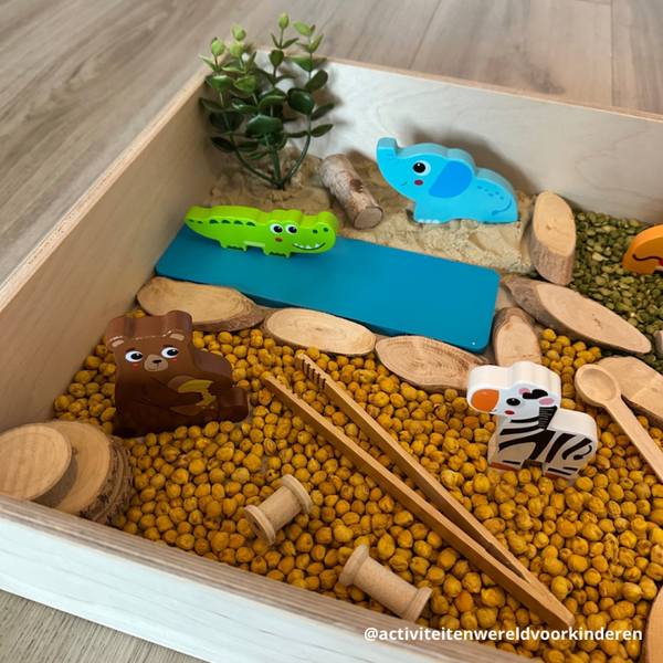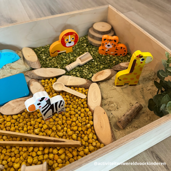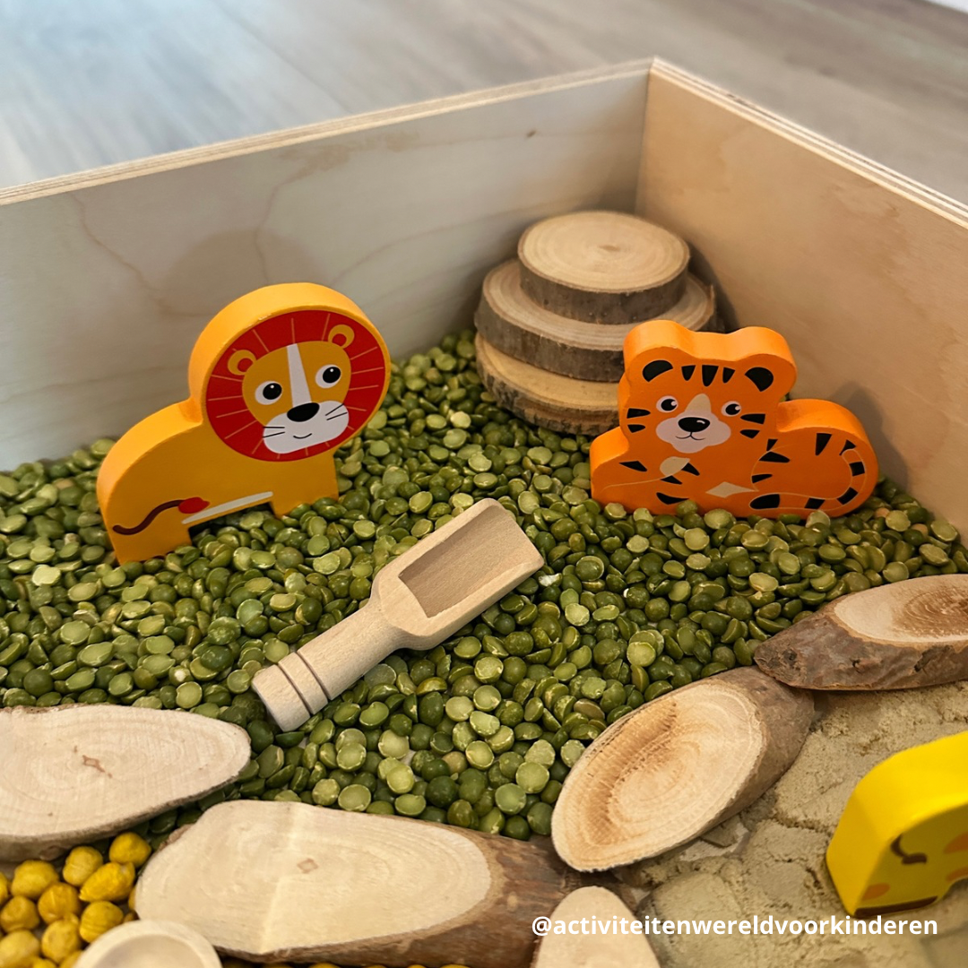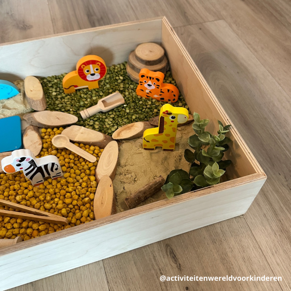- Inclusief Houten sensorische bak (50x35x9,5cm)