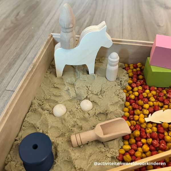 - Houten sensorische bak met deksel (L32xB23,5xH6cm)