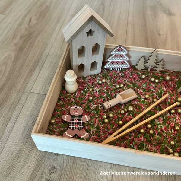 - Houten sensorische bak met deksel (L32xB23,5xH6cm)