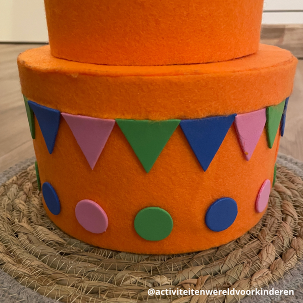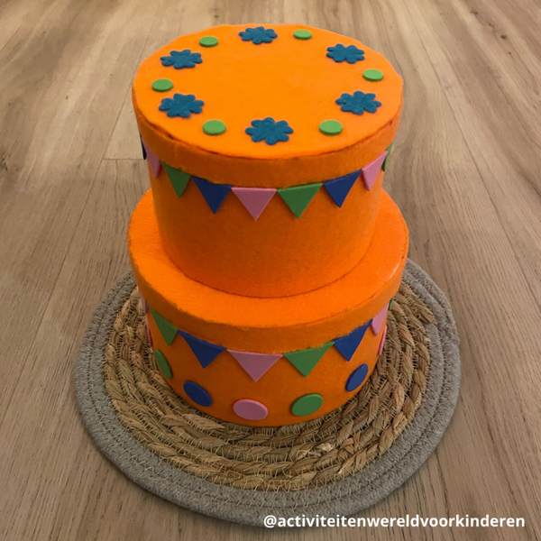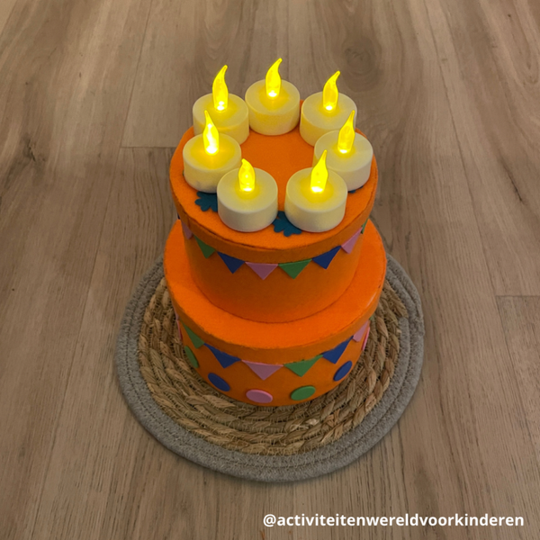 De tovertaart bestaat uit twee verschillende lagen. In de bovenste laag zitten de led waxinelichtjes. En in de onderste laag zou je kleine cadeautjes of traktaties kunnen doen.
